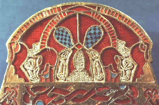 | DETAIL: Hinged Shoulder Clasp Found in the Sutton Hoo Burial Ship From: Suffolk, England 7th century |